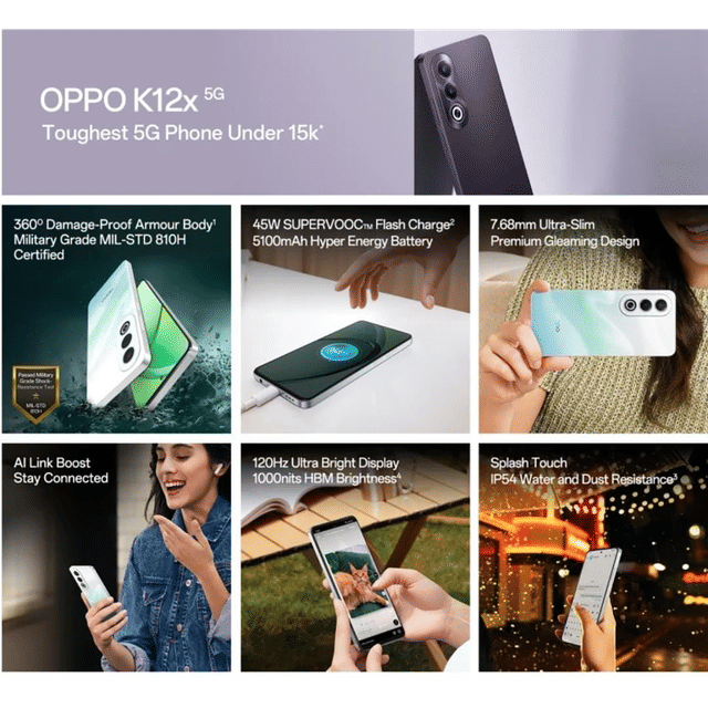 5100mah battery phone 5g phone under 15000 oppo android 14 phones oppo k series oppo k12x 2024 model